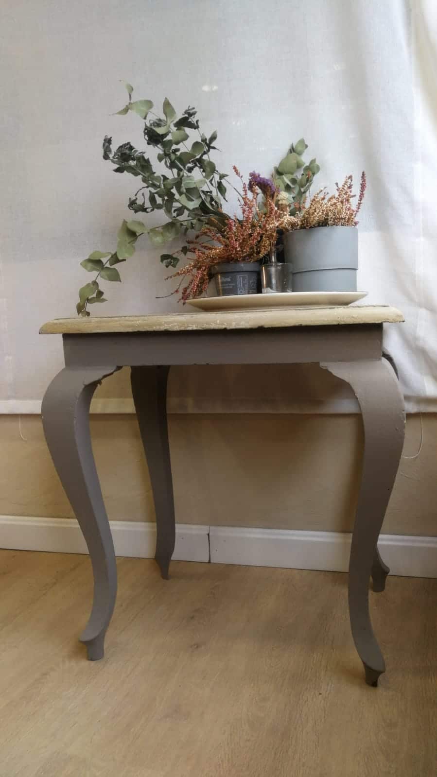 Tanto al primer como a la pintura les debes de añadir un 5% de agua a la cantidad que vayas a utilizar (para entendernos, un chorreoncito). Remueve bien y así será más fácil aplicarla. Una vez pintado el mueble ten cuidado unas tres semanas hasta que la pintura esté bien seca.