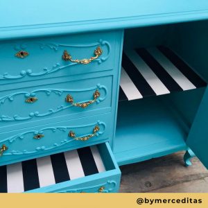 Tanto al primer como a la pintura les debes de añadir un 5% de agua a la cantidad que vayas a utilizar (para entendernos, un chorreoncito). Remueve bien y así será más fácil aplicarla. Una vez pintado el mueble ten cuidado unas tres semanas hasta que la pintura esté bien seca.
