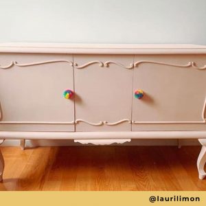 Tanto al primer como a la pintura les debes de añadir un 5% de agua a la cantidad que vayas a utilizar (para entendernos, un chorreoncito). Remueve bien y así será más fácil aplicarla. Una vez pintado el mueble ten cuidado unas tres semanas hasta que la pintura esté bien seca.