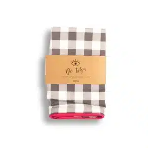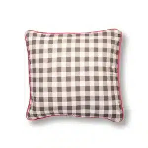 Funda de cojín sin relleno vichy. Cuadro Gris y bordón rosa.