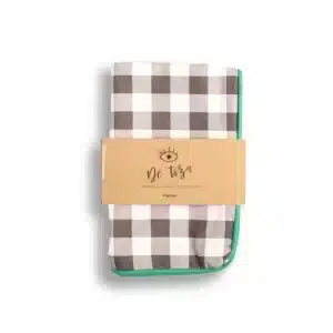 Funda de cojín sin relleno vichy. Cuadro Gris y bordón verde.