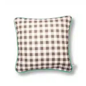Funda de cojín sin relleno vichy. Cuadro Gris y bordón verde.