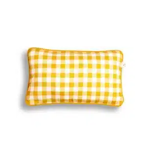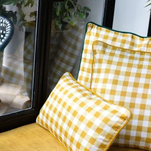 Funda de cojín sin relleno Vichy. Color Mostaza y bordón mostaza.