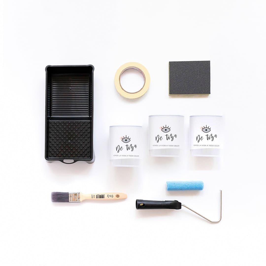 Este pack incluye todo lo necesario para pintar los muebles de una cocina de tamaño mediano.