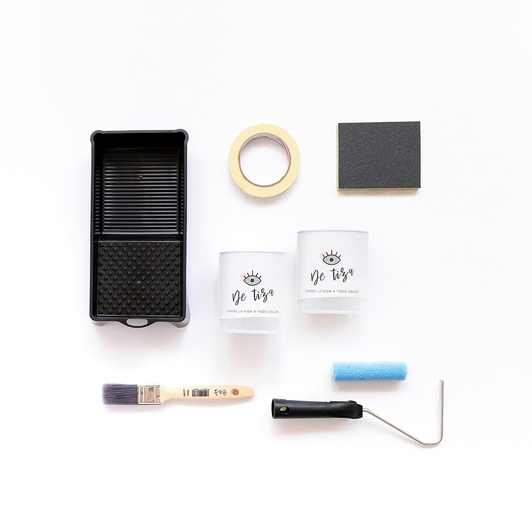 Este pack incluye todo lo necesario para pintar los muebles de una cocina pequeña.