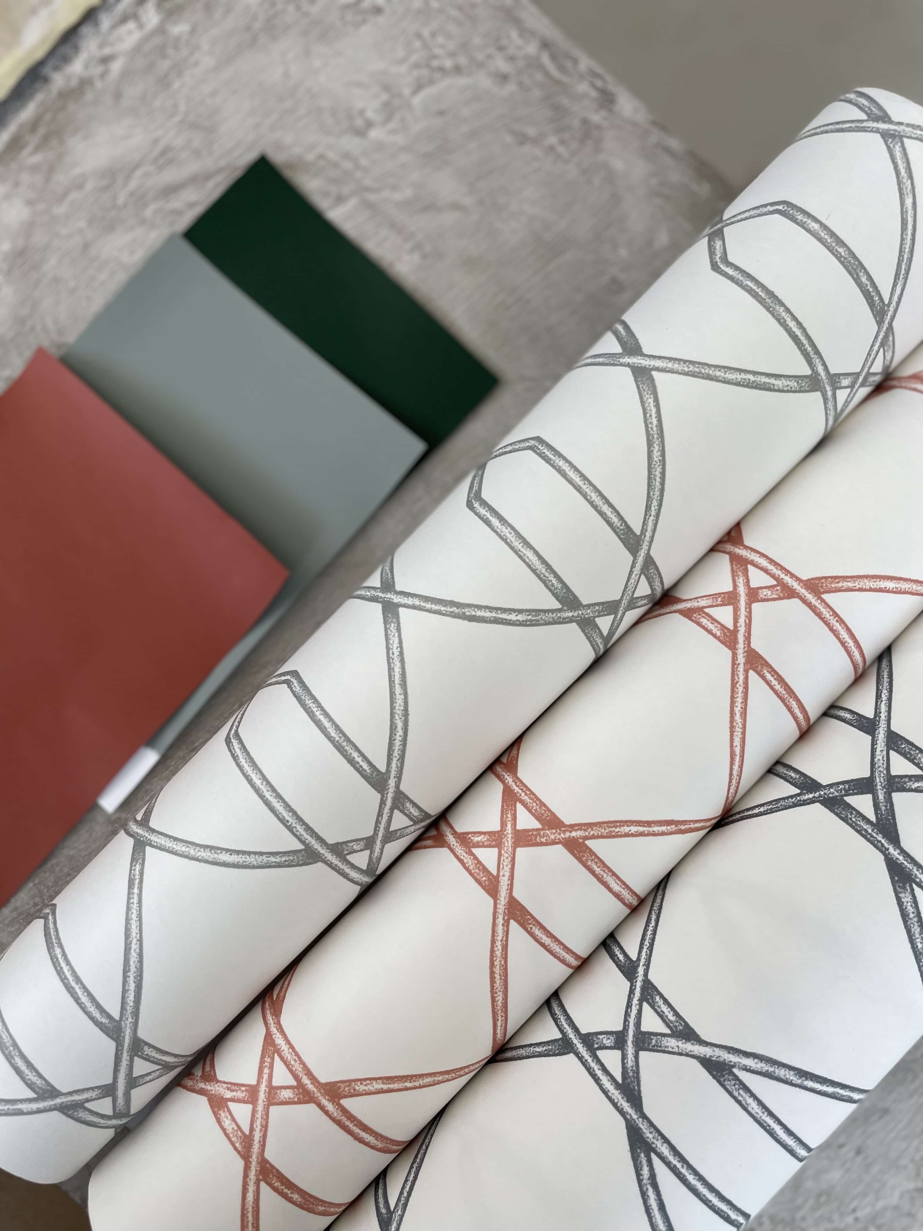 Cada rollo contiene 10 m de papel pintado continuo y  una anchura de 50 cm.