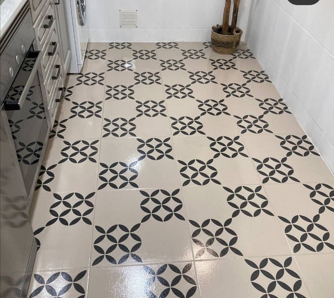 - Podemos dejar nuestros suelos de un solo color o una vez pintado y seco, decorarlo con plantillas. En el caso que decidas decorarlo, asegúrate que mínimo han pasado 8 horas y un máximo de 12 horas antes de aplicar el barniz de acabado.