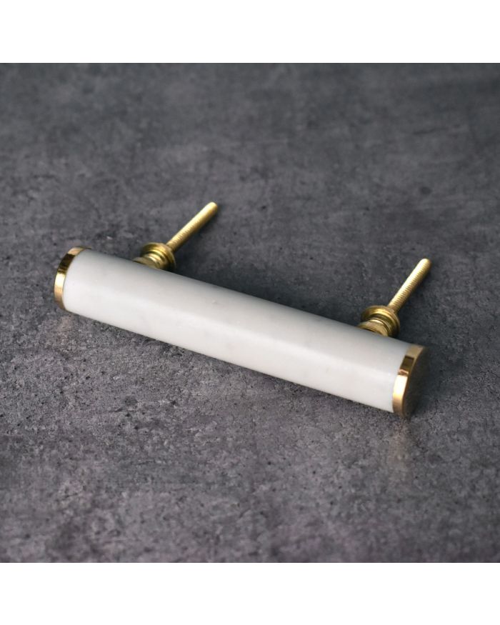 Tirador de armario de latón con barra de piedra de mármol blanco. Ref Dt0145.