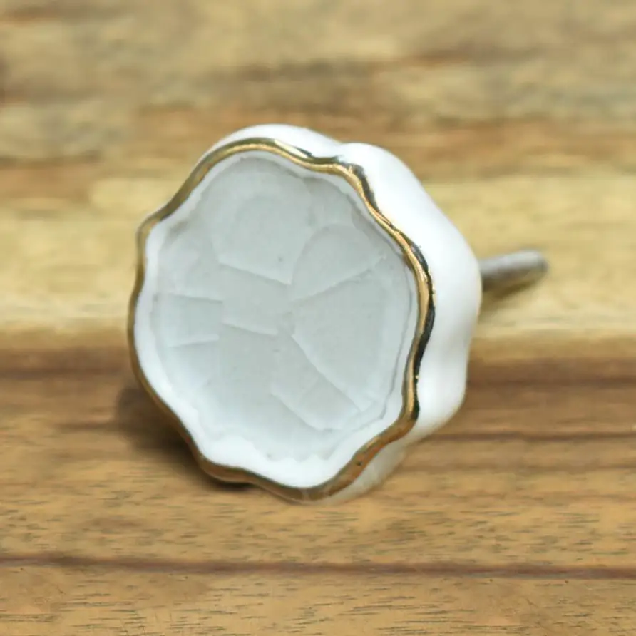 TIRADOR DE CERAMICA DORADA QUATREFOIL DE VIDRIO AGRIETADO BLANCO