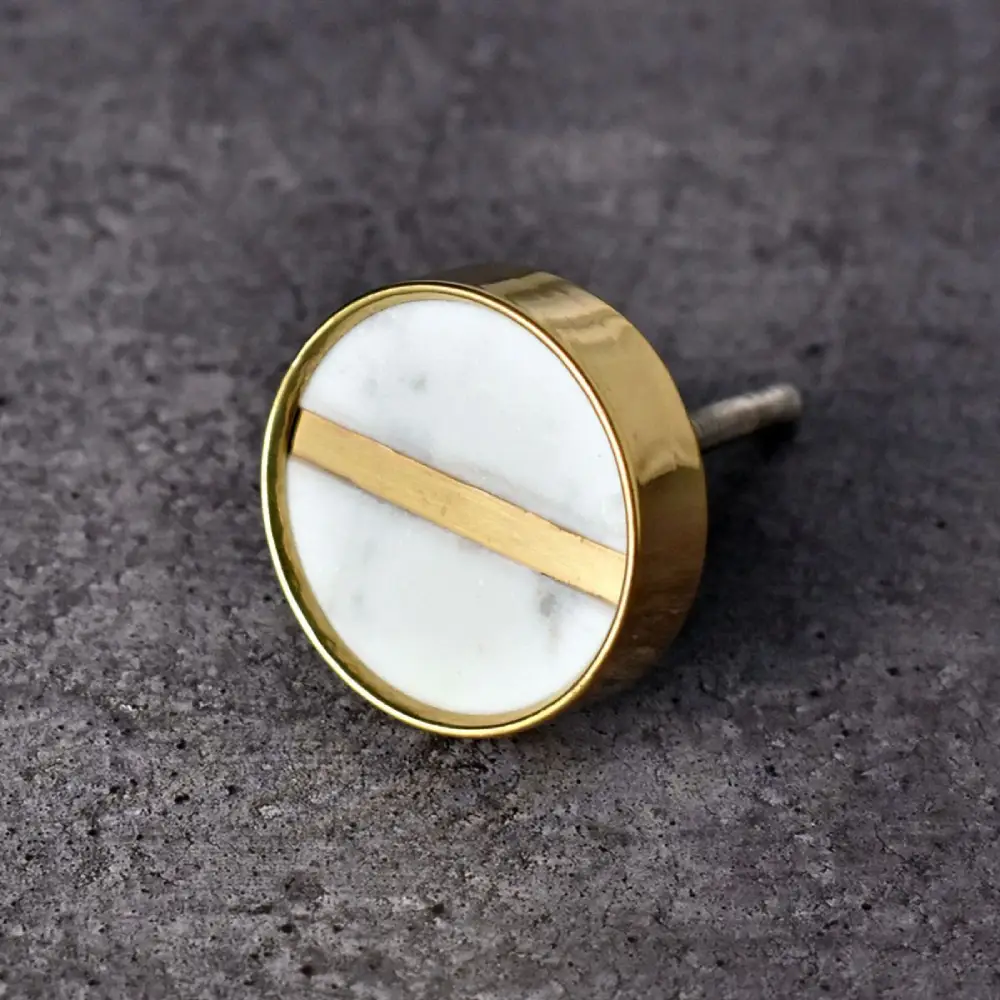 TIRADOR DE LATON Y PIEDRA BLANCA.