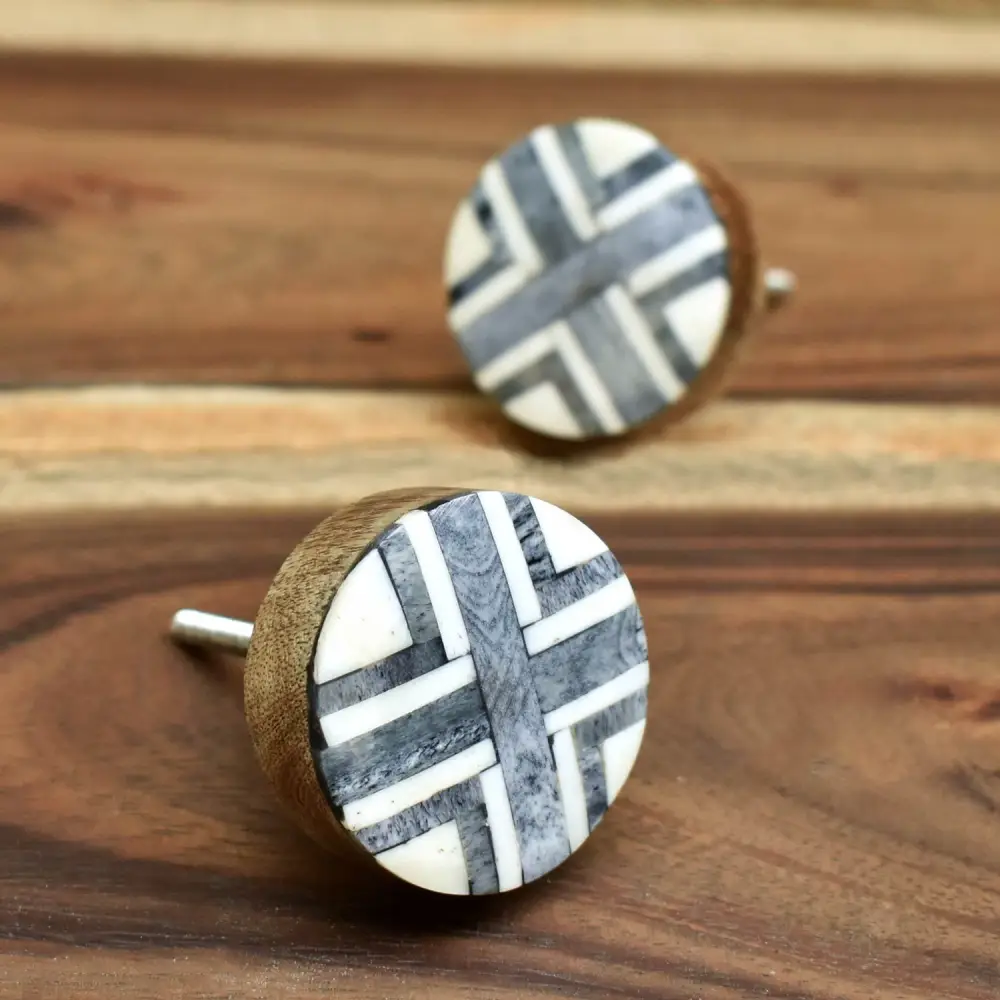 TIRADORES DE MADERA CON INCRUSTACIONES DE HUESO DE TARTAN.