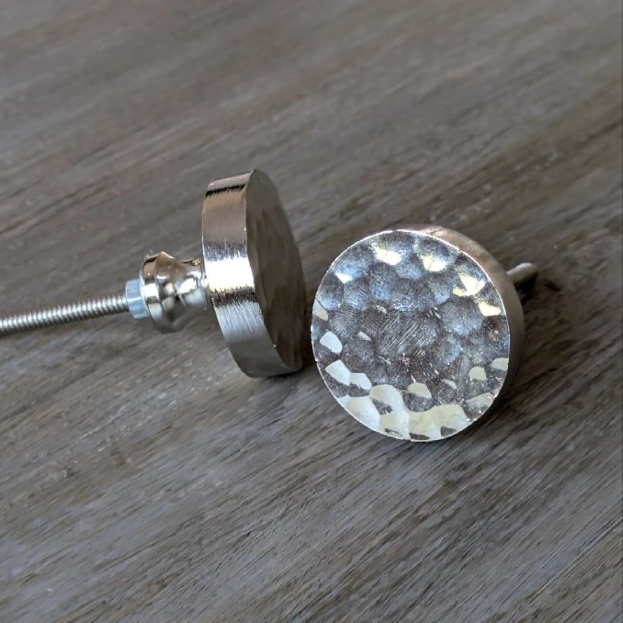 Pomo para muebles de metal pulido martillado plata. Ref Dt0101