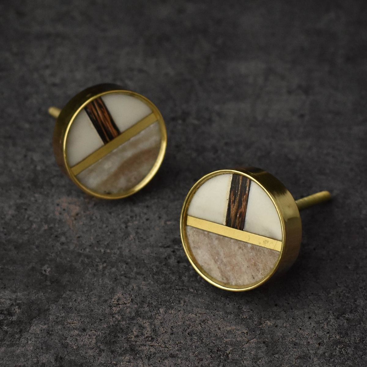 Pomo de piedra con incrustaciones de latón y madera en una envoltura de latón puro. Ref Dt0147