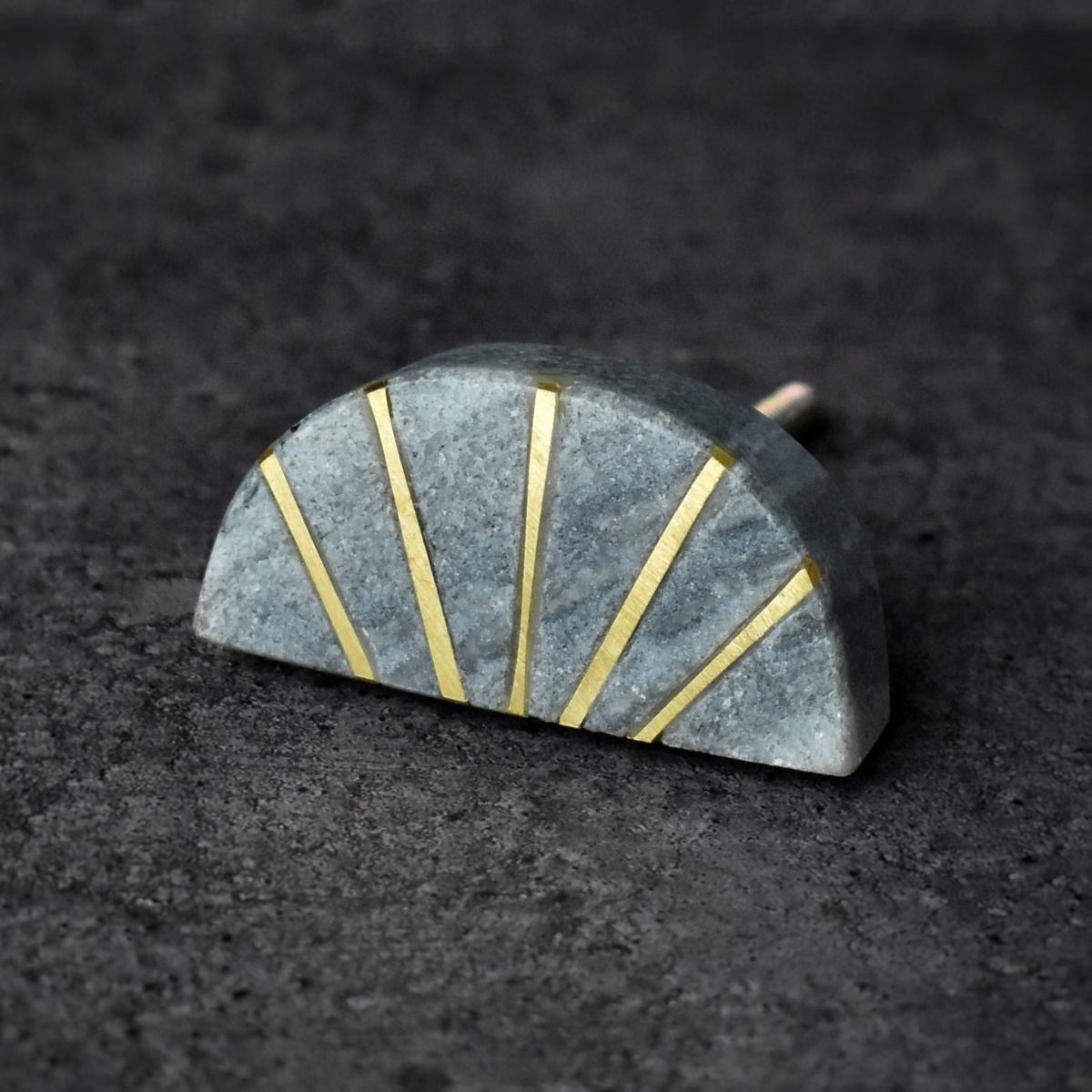 Tirador de madera y latón con forma de media luna y piedra Semi Chakra. Ref Dt0149